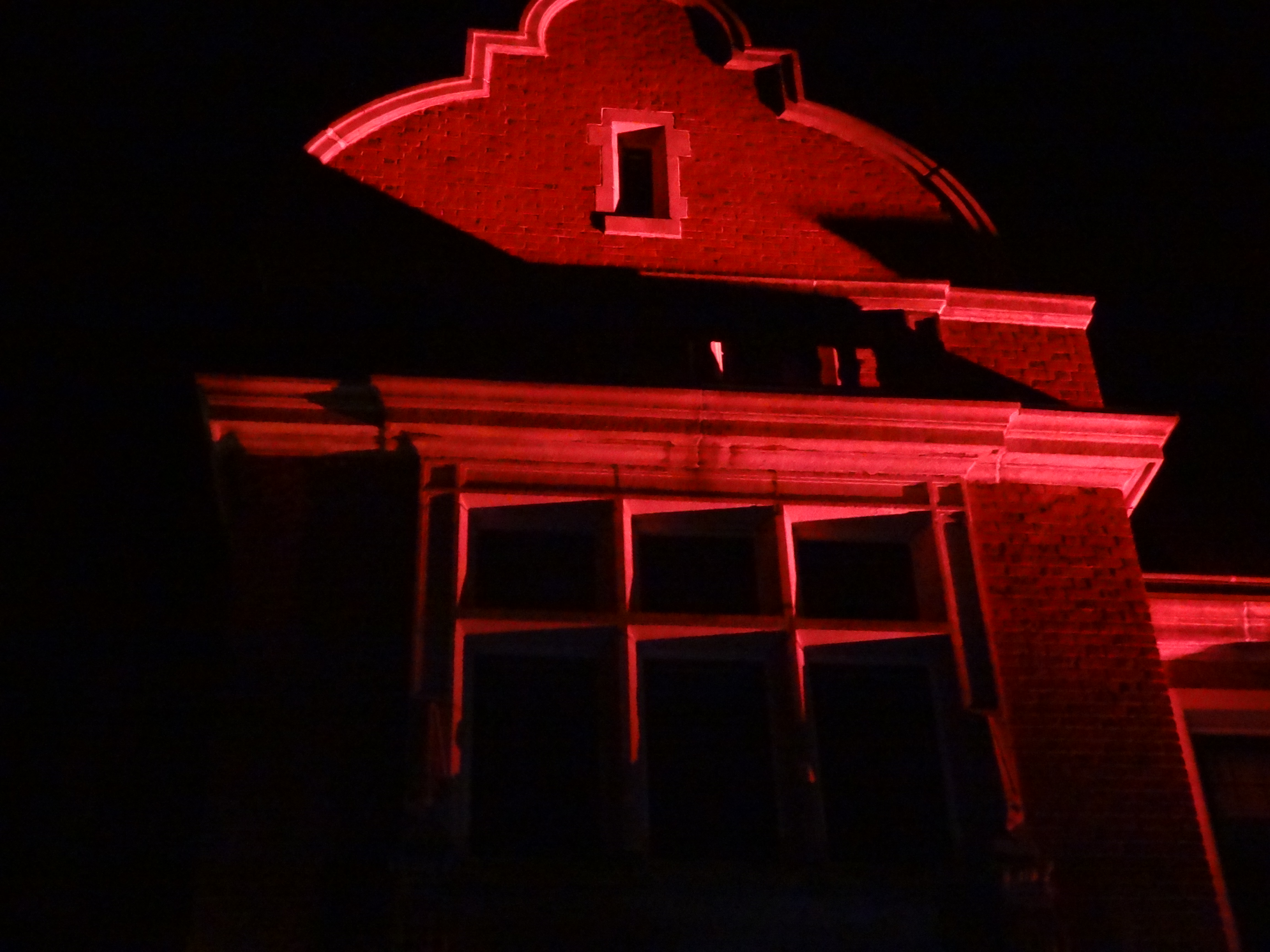 An eerie blue light illuminates the room where the murder occurred of the last owner of the mansion.