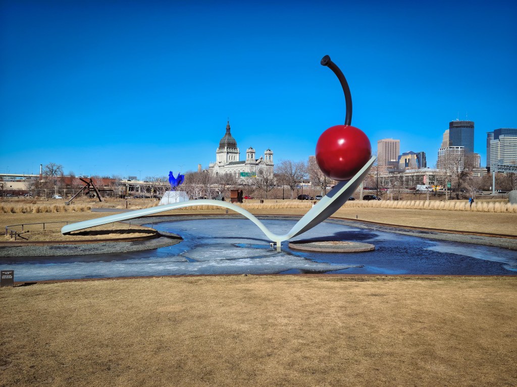 If you’re ever in Minneapolis, the sculpture garden is a must-see! Access to it is free and open to the public. You don’t need to walk to the Walker to see it.