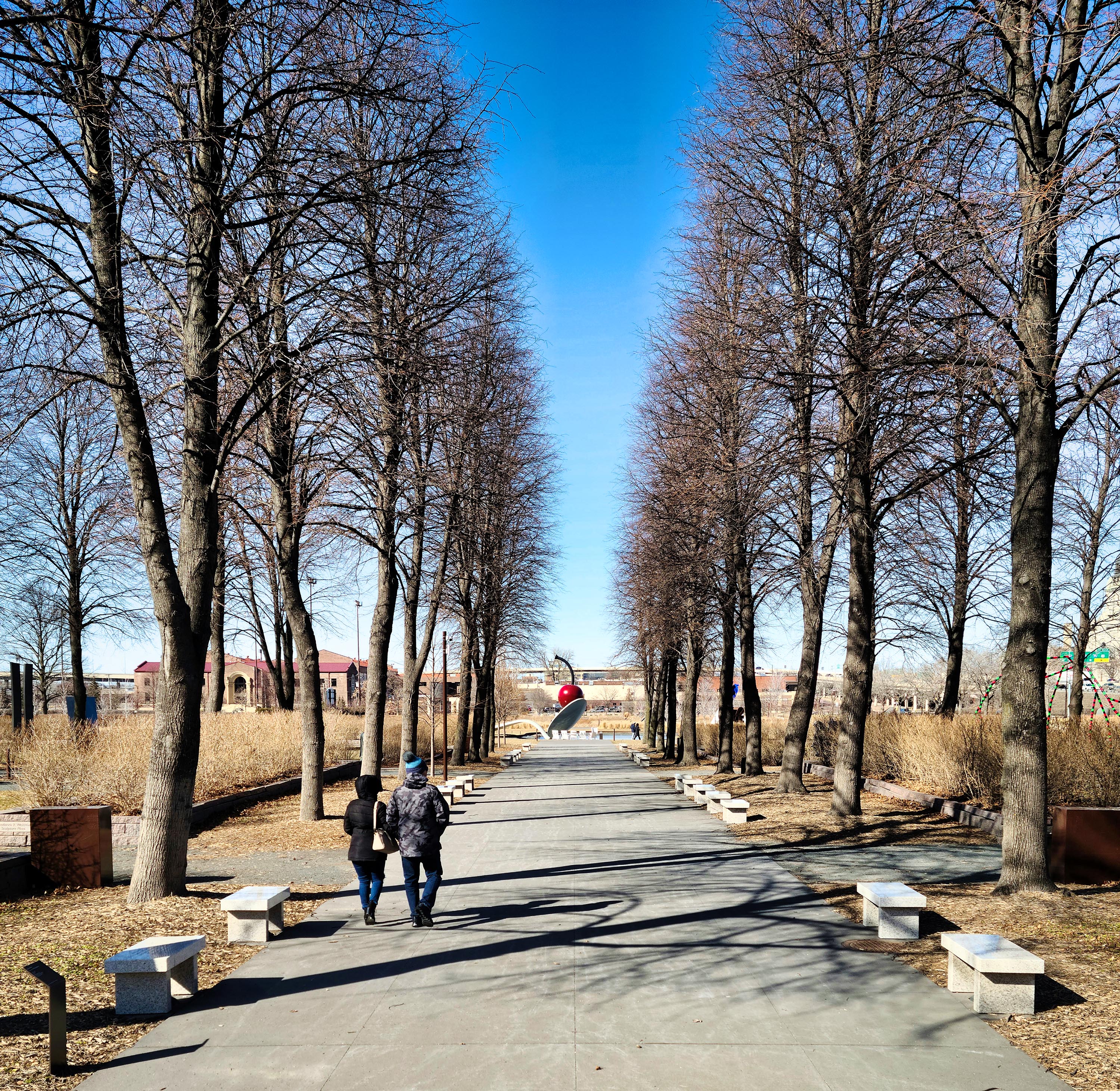 If you’re ever in Minneapolis, the sculpture garden is a must-see! Access to it is free and open to the public. You don’t need to walk to the Walker to see it.