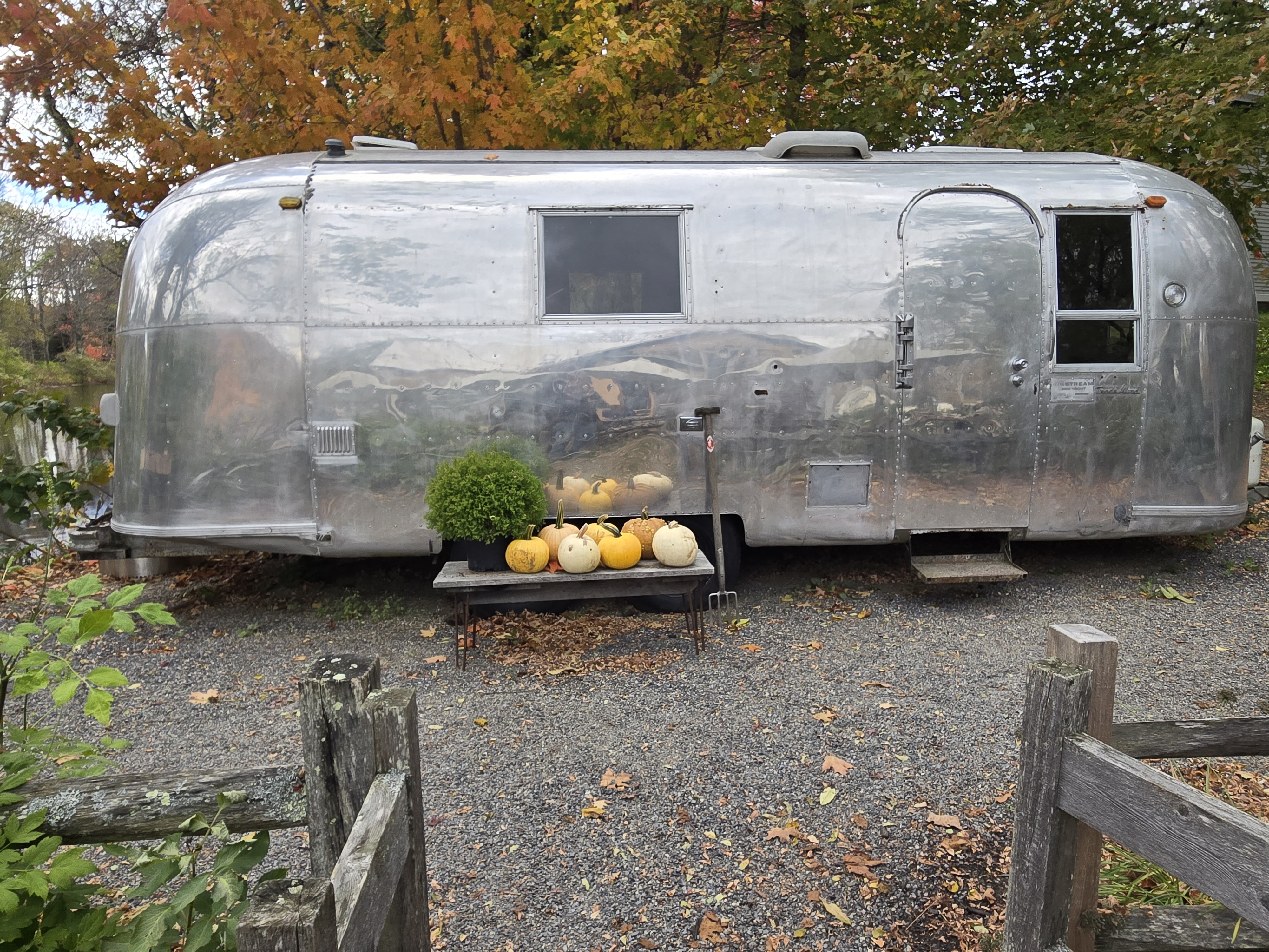 Then we went back outside and wandered around the grounds. We crossed the famous bridge over the mill pond, which is featured in the TV show, and ended up buying yet another scone (not so warm this time) and eating it in the outdoor dining area near Erin’s Airstream.