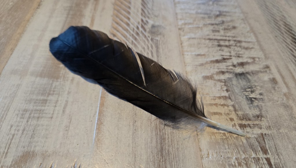 I seemed to be a roll with interesting animal encounters. Once again, I consulted the wise and wonderous internet for interpretation. I searched for “meaning of crow feather falling on your head.”