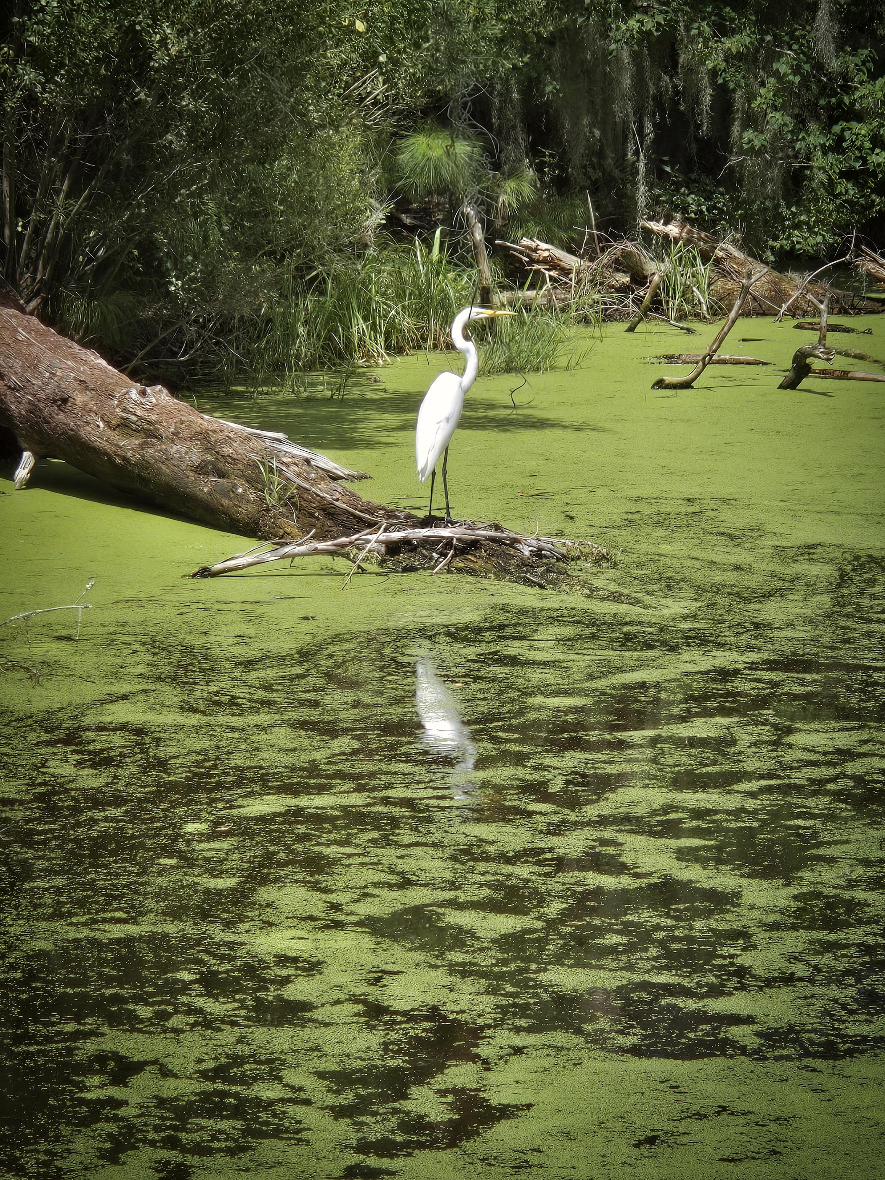 I brought my camera in case the birds were close enough for me to photograph. Alas, the experience reinforced my thought that I really need to buy a more powerful telephoto lens! Also, the light was right in my face, harsh and white, fading out everything on the far side of the river where the pelicans rested.