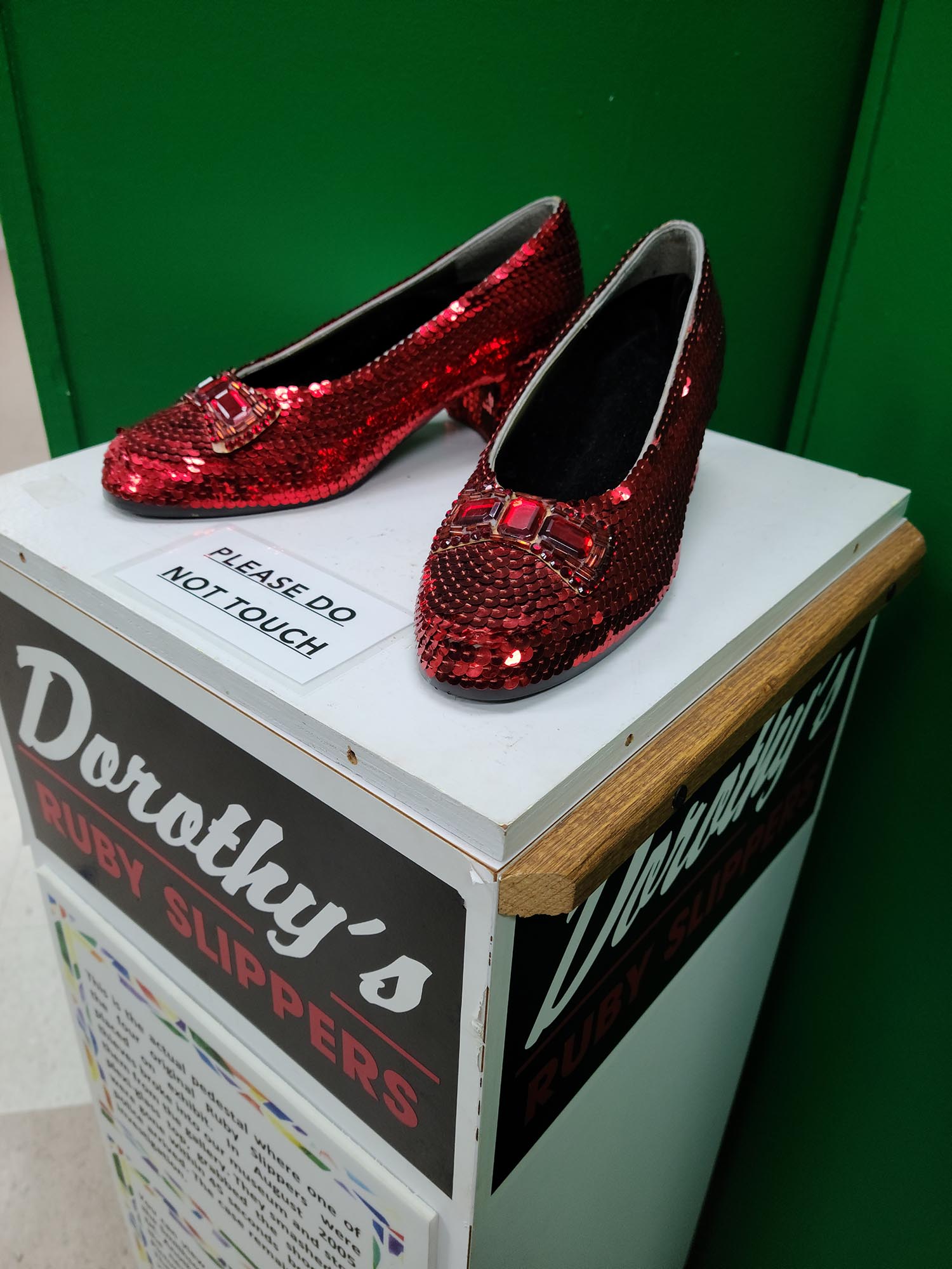 Red slipper replicas that were in the Judy Garland museum when we visited in 2021.