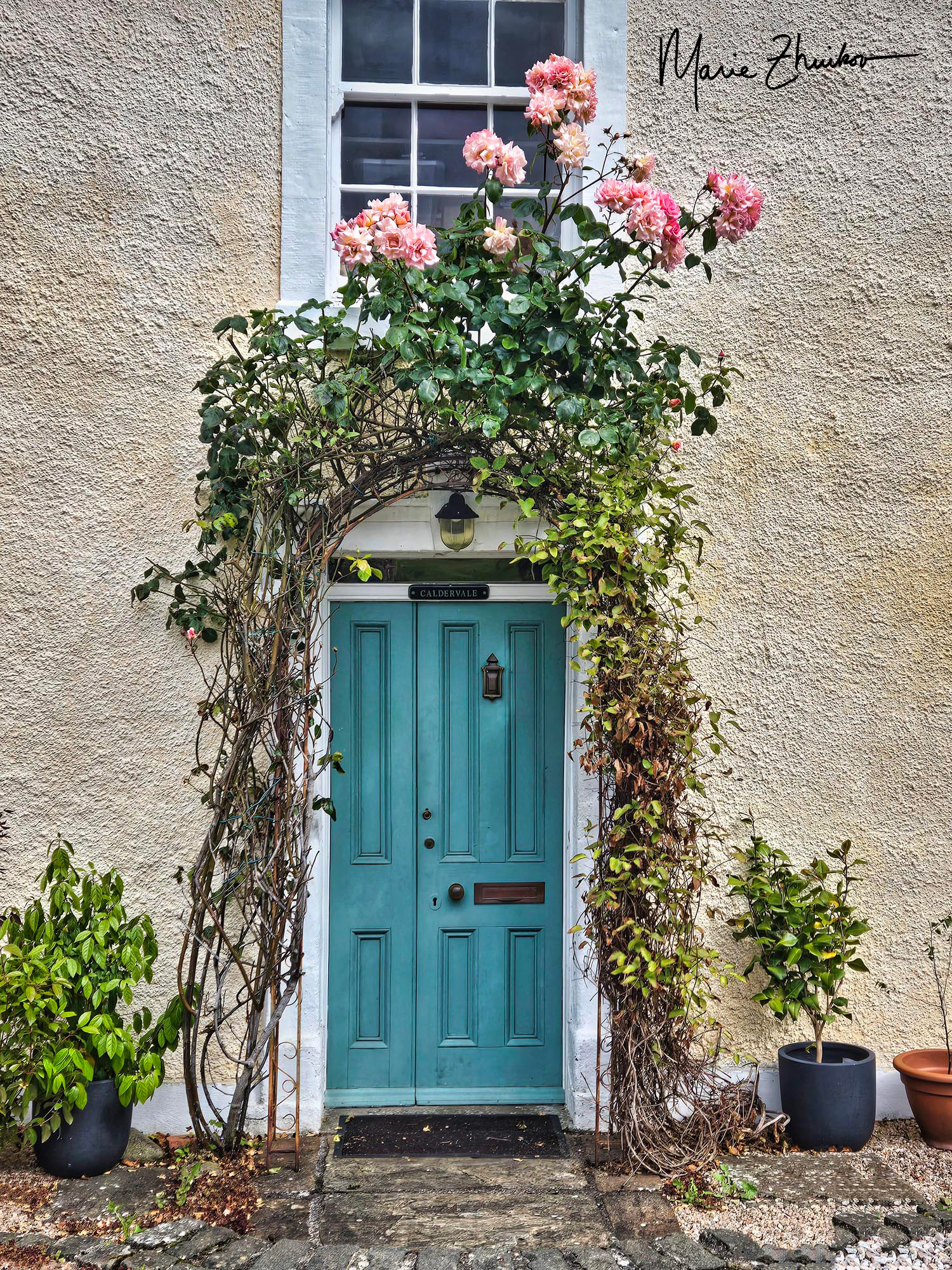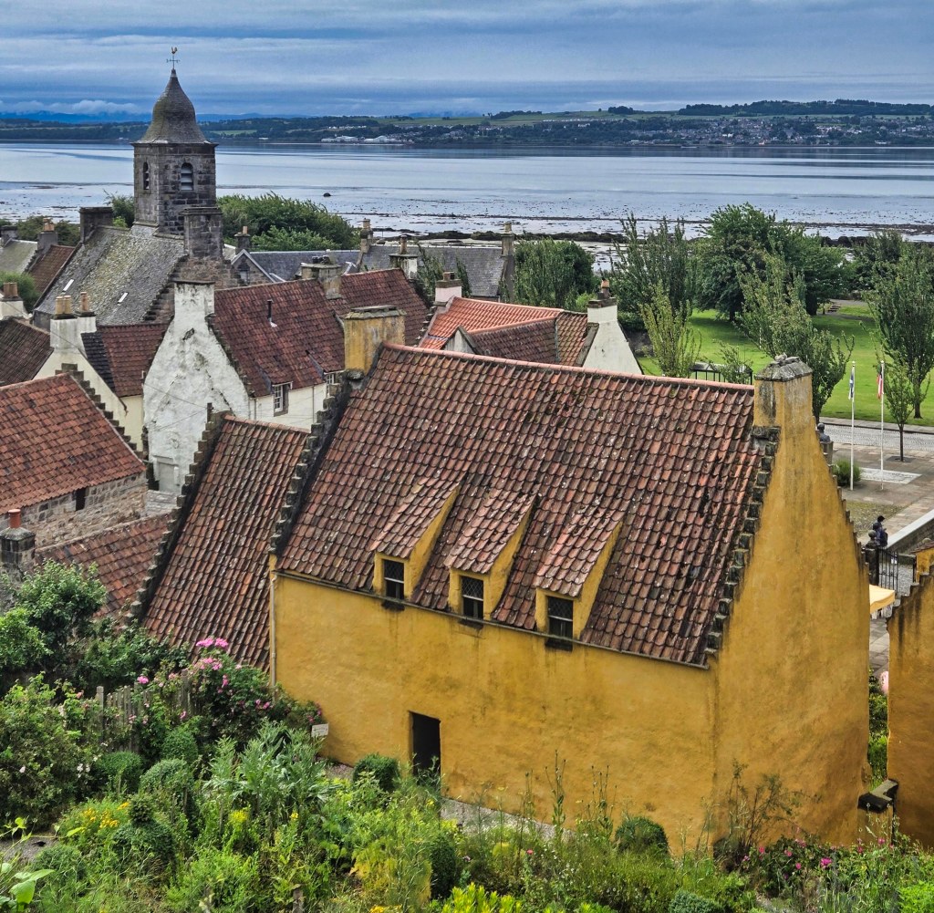 Crainsmuir/Culross is where the witch Gellis Duncan lived and is where she and Claire were tried for witchcraft. The village is one of Scotland’s most complete examples of a 17th and 18th-century town. Steep cobblestone streets are lined with white stone houses that sport red-tiled roofs. The town center is occupied by a small golden-yellow palace with a beautifully reconstructed period garden. Henry took us along the streets and up to an overlook flanked by a garden full of pink roses. We could also see an herb garden behind the palace that was Gellis’s garden in the series.