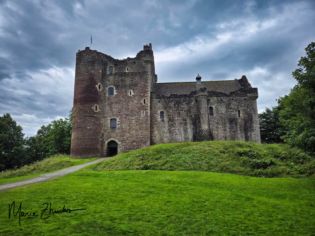 Then we were off to Doune Castle. In Outlander, it’s Castle Leoch, home to Clan MacKenzie. In “Monty Python and the Holy Grail,” it’s the castle where there’s a discussion about African Swallows and where a prince croons about how he doesn’t want to be king. It’s also featured in “Game of Thrones.” Seeing the familiar courtyard, Mrs. Fitzgibbon’s kitchen, and other movie locations was so fun! We took an audio tour, which was narrated by Sam Heughan, the actor who plays Outlander’s Jamie Fraser.