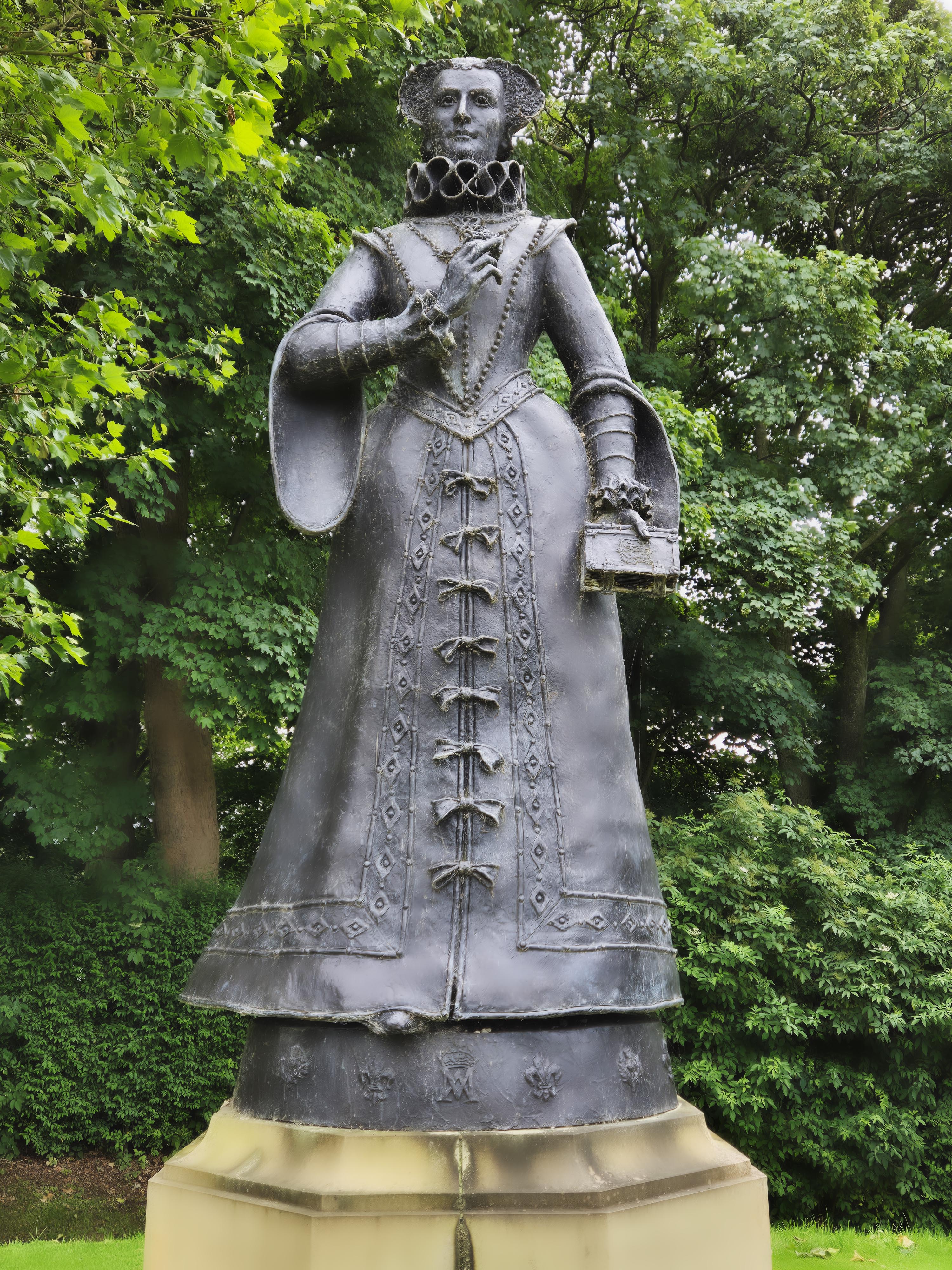 Our next stop was Linlithgow Palace, which is known as the birthplace of Mary Queen of Scots. In Outlander, it’s also the stand in for Wentworth Prison where Jamie was sentenced to hang and was tortured and assaulted by Captain “Black Jack” Randall. Linlithgow means “the loch in the damp hollow,” named because the palace lies on the shore of a small lake. We weren’t really feeling a need to tour the castle, so spent most of our time walking the grounds and visiting the Mary Queen of Scots statue, which sports the mysterious quote: “My heart is my own.” A biography about her has the same title, but I suspect that the statue came first. Apparently, this quote was from one of her letters to her cousin Queen Elizabeth where Mary discusses potential husbands for herself. I guess she didn’t like any of her suitors! Mary’s such a fascinating historical figure. I had the chance to visit a museum about her in Jedburgh during a previous visit.