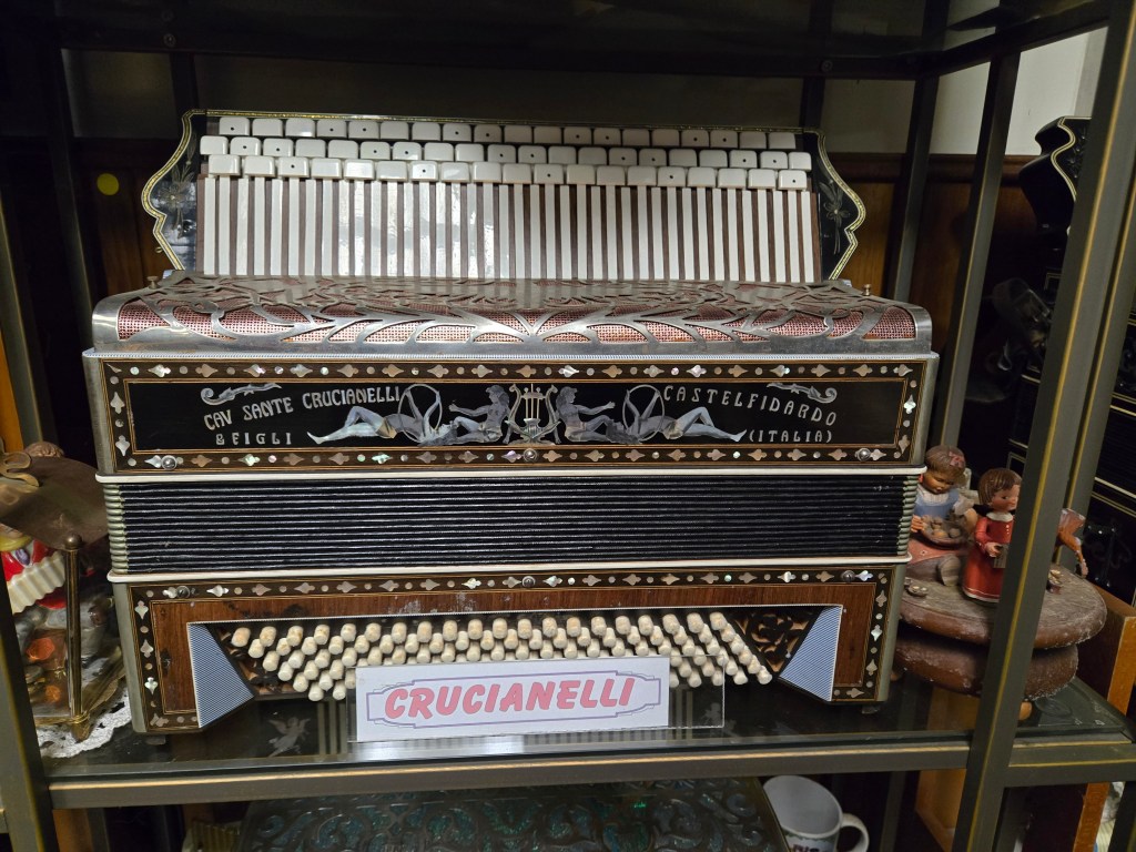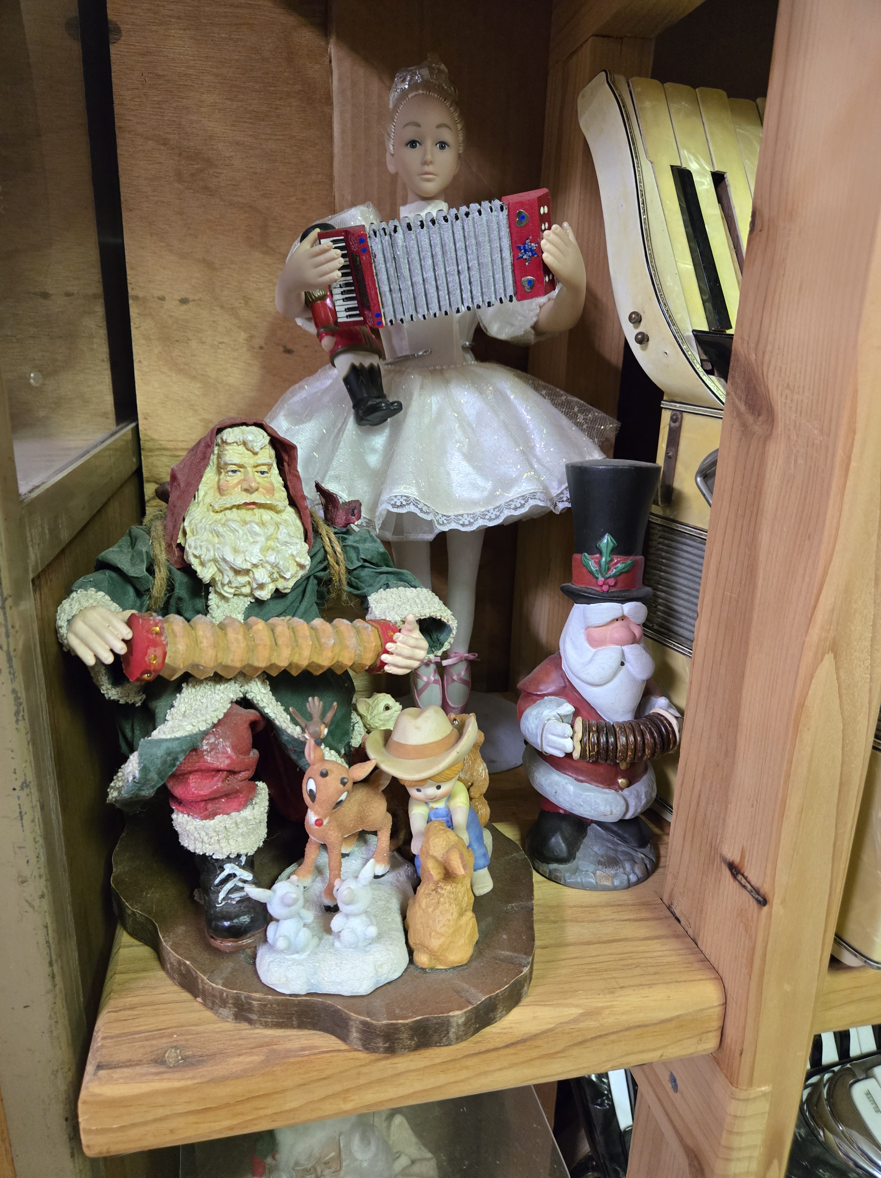 I’ve driven past the unassuming building on a busy street corner hundreds of times on my way to work and finally had time to take a peek last weekend. Inside are over 3,000 accordions and probably every ceramic figurine ever made that’s holding an accordion. The museum contains instruments from all over the world: Ireland, Spain, Germany, Scandinavia, etc. —from primitive concertinas to highly embellished accordions from the Vaudeville era that feature abalone. We even noticed a wooden accordion.