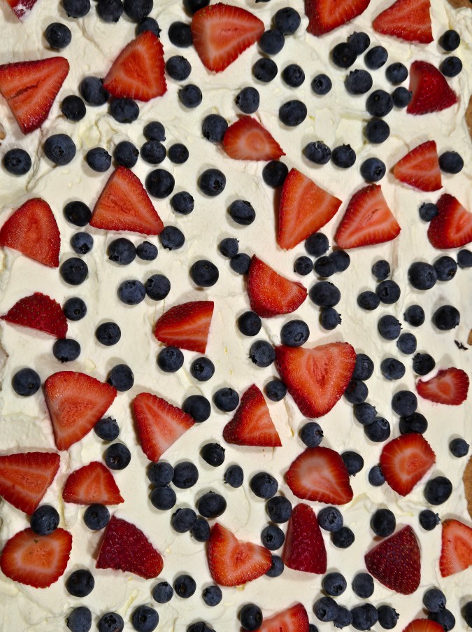 Back in Colonial days, cakes used to be a “thing” for Independence Day. As for us, we devoured a fruit pizza, which is basically a huge sugar cookie covered in cream cheese, whipped cream and fruit that matches the day’s color scheme (red, white and blue).