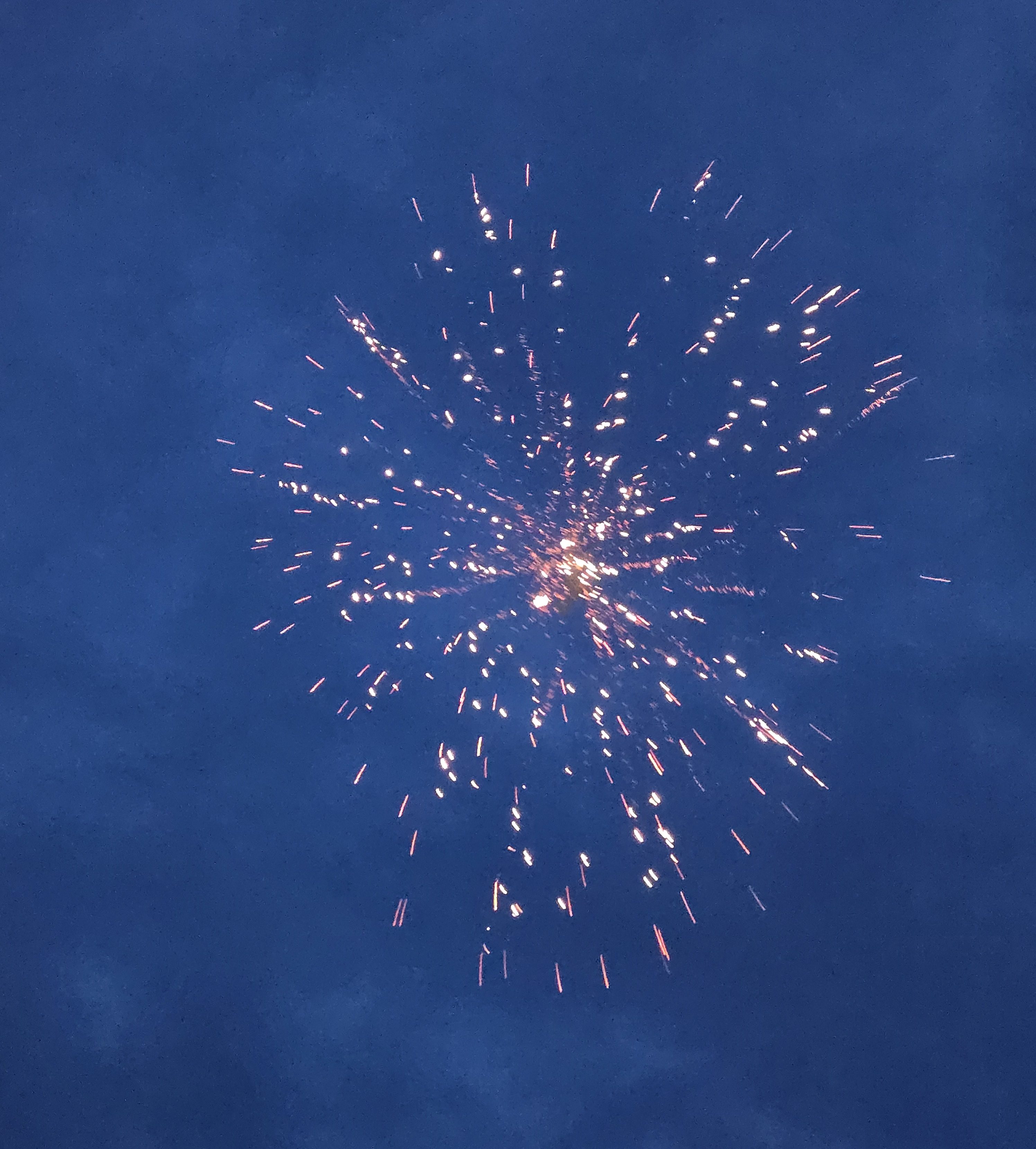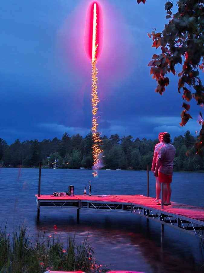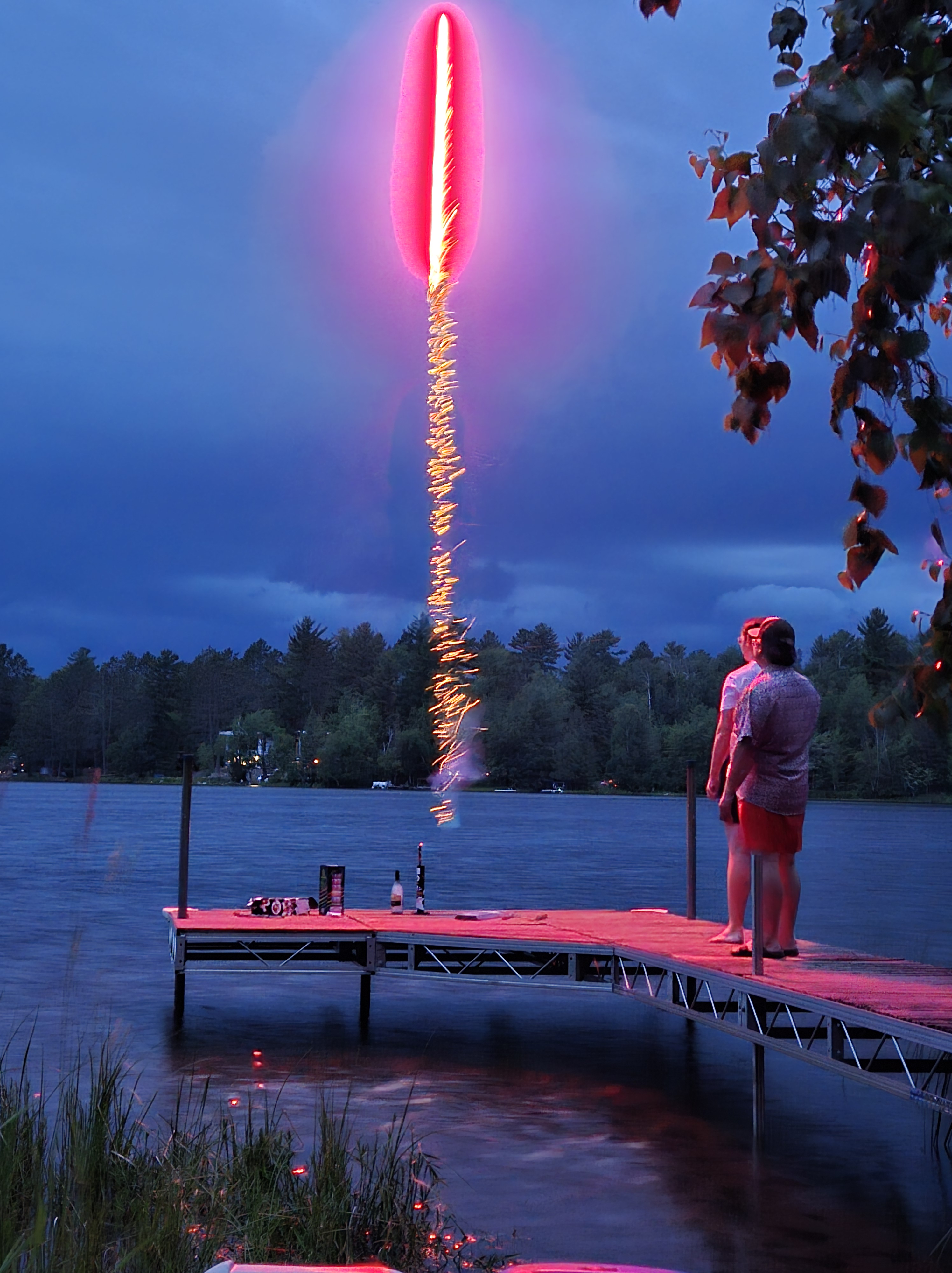 I can’t believe that my phone camera caught this firework on its way into the sky, looking like a space rocket. An empty brandy bottle served as a fine launch pad.