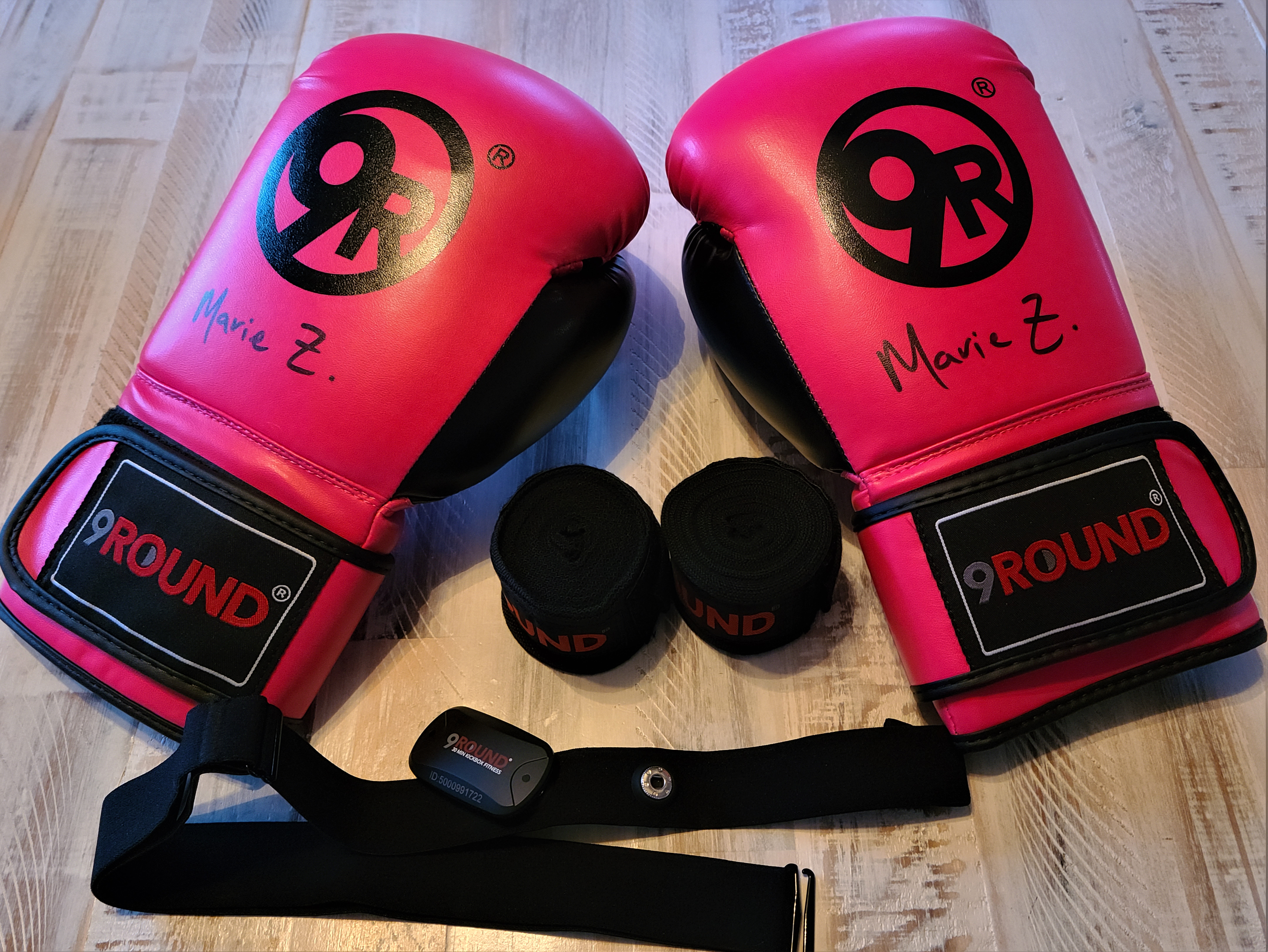 Then, the instructor outlined the three monthly exercise plan options they offer. I chose the cheapest one (because I’m cheap) and was issued my VERY OWN boxing gloves (I chose pink and black), wrapping tape, and heart monitor. I was also able to choose my own boxing superhero name, which will be shown on the public monitor display in the workout room. I chose “Magma” because it starts with M like Marie, plus cuz I’m so hot.
