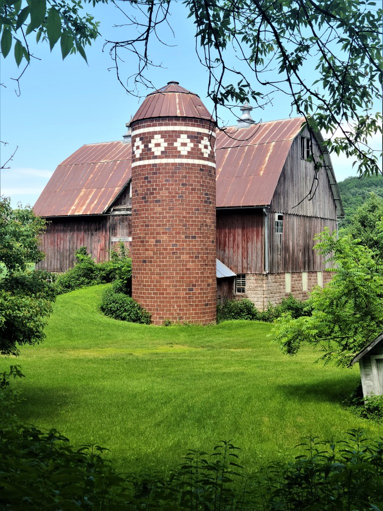 The final morning of our trip, the temps dropped into the 80s again, so we hit the bike trail. We drove into Lanesboro and began from the trailhead near the bass pond. We pedaled west toward the town of Fountain, turning back at the trail junction (where it joins the Harmony-Preston Trail). On our return, we stopped at the Old Barn Resort for lunch – an interesting historical site connected to the Allis Chalmers Machinery Company. Lots of cliff swallows nest under the barn’s eves.