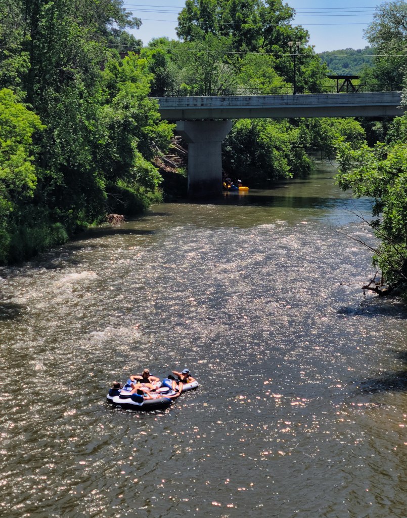 The temperatures climbed into the 90s the next two days, so we opted for cooler forms of entertainment. One day, we visited Niagara Cave in Harmony, Minnesota, about fifteen miles south of Lanesboro. I’ll write more about that in a separate post. The next day we went tubing down the river. The campground offered a shuttle service and tubes at a reasonable cost. They drove us to a drop-off spot, and it took us about two hours to tube back to the campground. We just hopped out of the river at the campground landing and brought our tubes back to the office. It worked out pretty slick. The only thing that gave me pause is the lack of instruction by the shuttle driver. He just made some joke about hoping we all had our wills updated and then dropped us off. (!!)