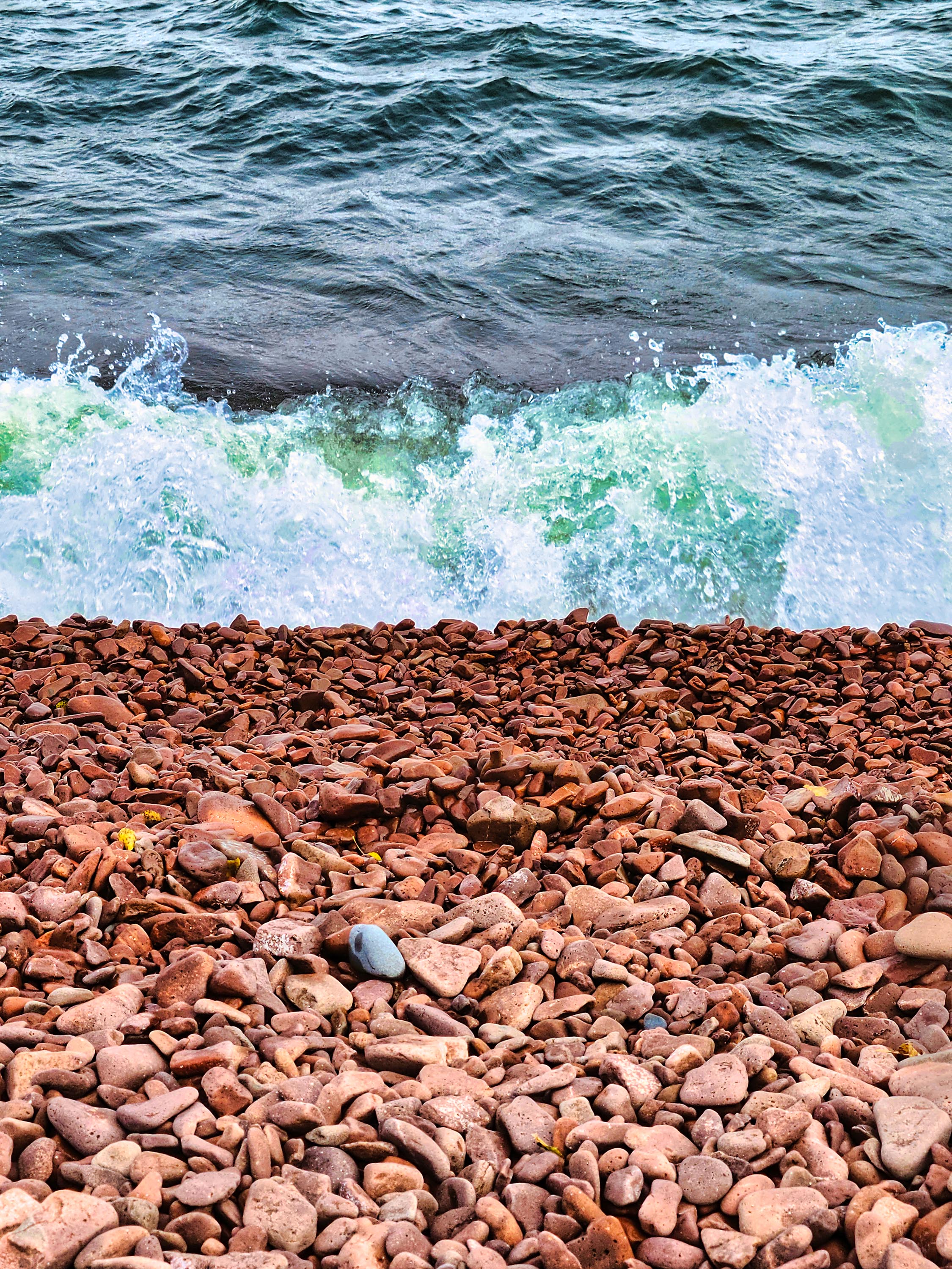 We sat by the water to see if we could hear the beach “sing.” When waves recede from the cobblestones, the stones come to rest with a tinkling sound unique to this beach. Waves were plentiful during our visit – the sound was subtle, but I do think we heard the beach sing!