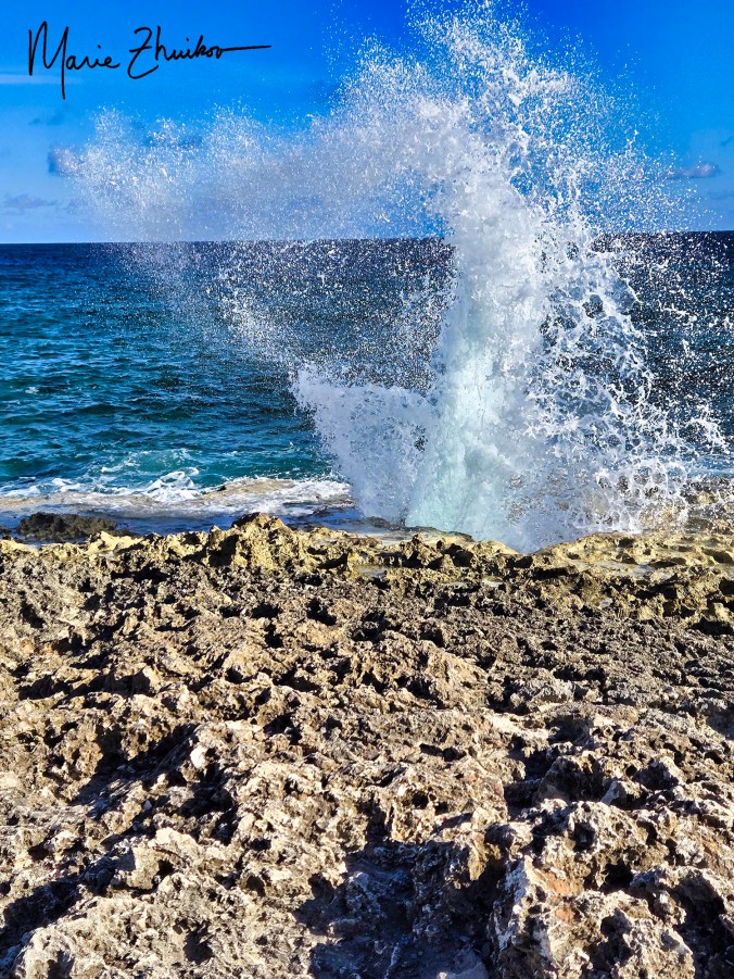 On our way back to our resort, we stopped at the Blowholes. These are holes in the rock along the ocean shore where the water sprays high into the air. There are only a few blowholes, but they were fun to see; kind of like the Grand Cayman version of Old Faithful.