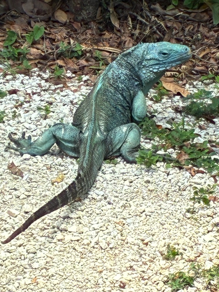 You heard me: blue iguanas. This special species is only found on Grand Cayman Island. The park has a conservation facility where they breed iguanas – some for release in other parts of the island. If I would have been quicker writing this post, I could have had it done on May 8, which is National Blue Iguana Day on the island. As it was, we were still traveling around the island with no time to write!