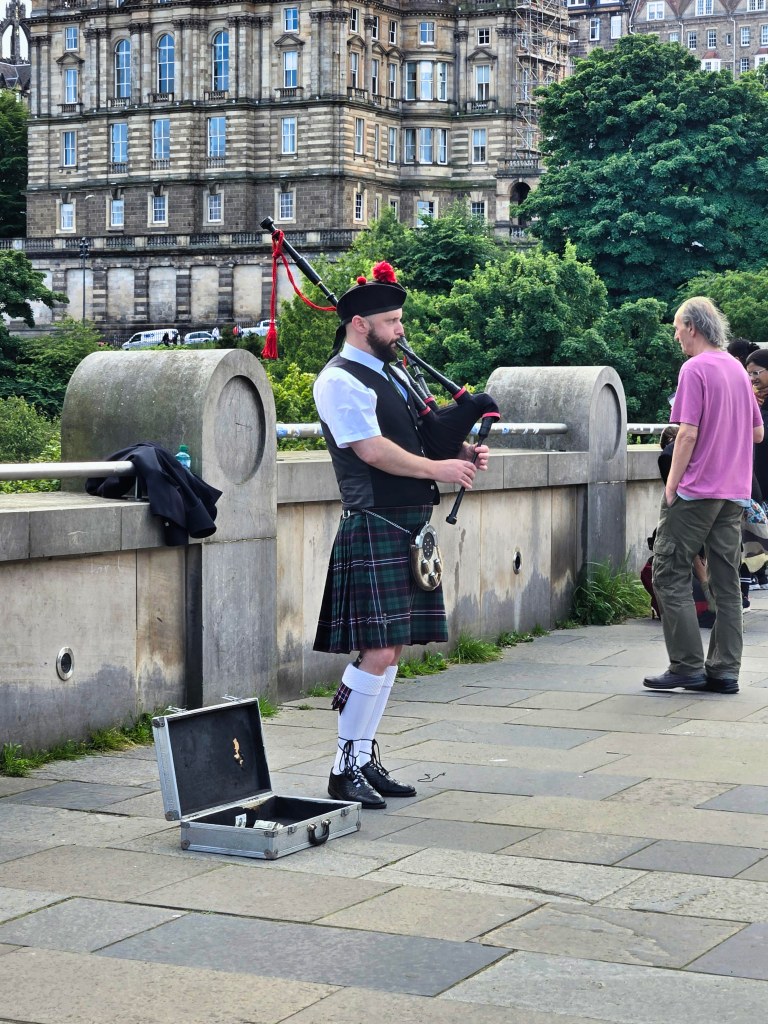 A street piper outside the Scottish National Gallery.