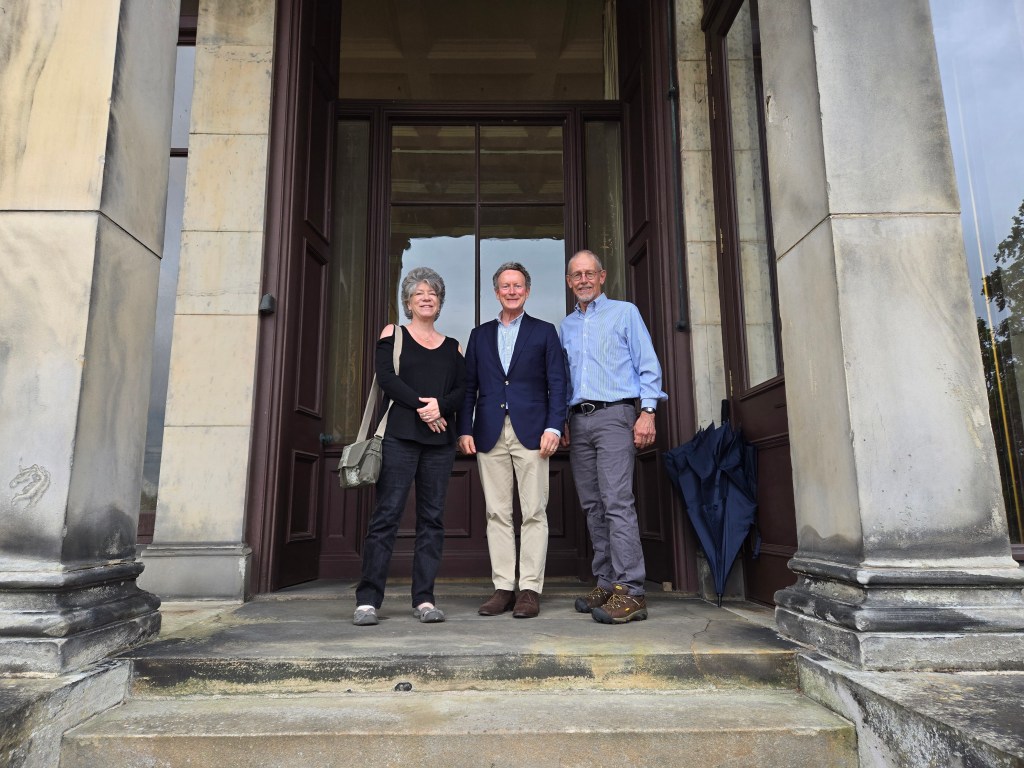 Charles gave me permission to blog about our visit; however, the Bruces don’t allow photos to be taken in the house. The ones accompanying this post are from the Broomhall website. We did take some shots of all of us on the steps of the house, thanks to Calum. I was tickled to notice that both Russ and Charles were wearing the same seersucker shirt.