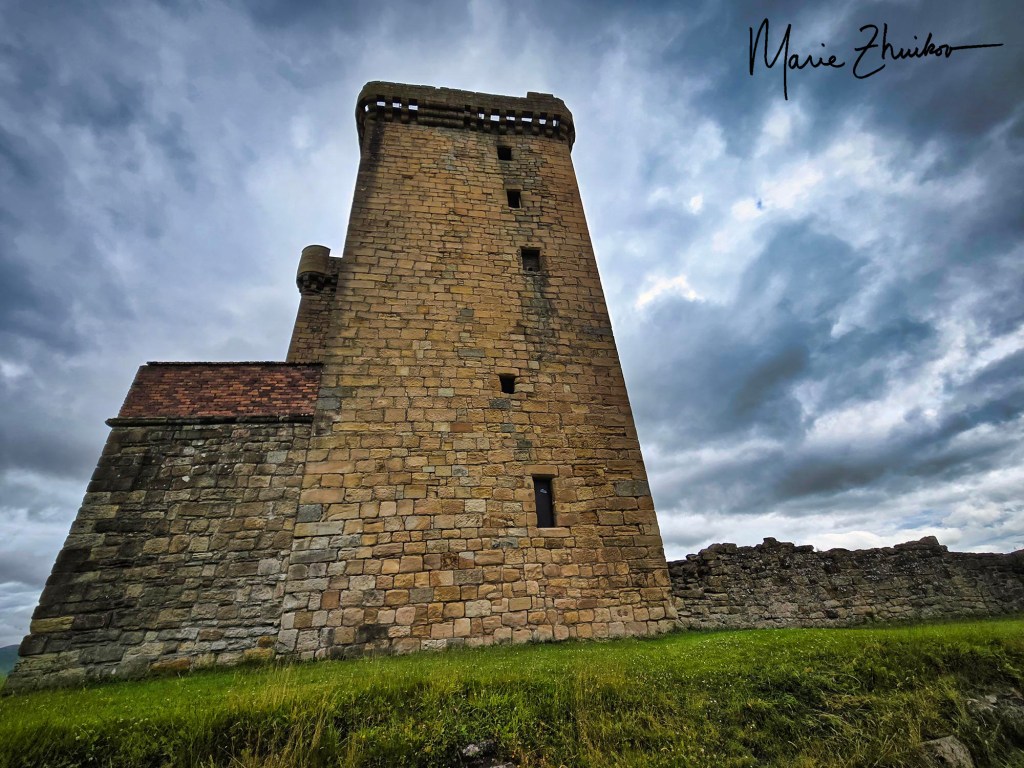 For me, our visit to Clackmannan Tower was truly an unexpected highlight of our trip (thank you, Henry!). King’s Seat Hill upon which the tower is built had long been a strategic outpost. Before the brick tower, the English had built a wooden tower upon it. It commands a view of the Ochil Hills, a 25-mile range that stretches between the Firth of Tay and Stirling.