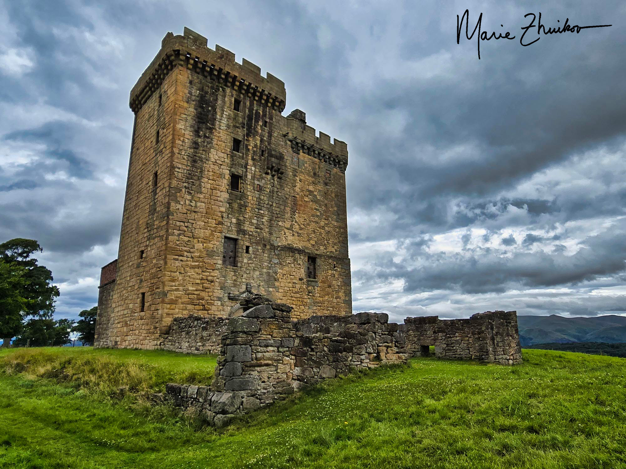 The tower has been rebuilt and refortified a couple of times due to this subsidence. It’s not usually open for tours and is now owned by Historic Scotland. During our tour of Broomhall, Charles Bruce told us that one of the stone archways in an upper level of the tower collapsed and broke through the floors below it. It’s not habitable but does have electricity and a well with water. Historic Scotland has plans to increase public access to the tower in the coming years. I wish them luck!