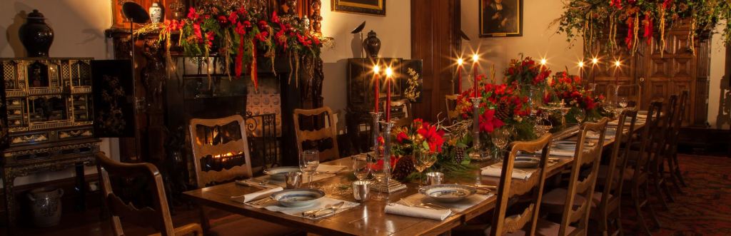 The Broomhall Dining Room and fireplace, decorated for the holidays. Image courtesy of Broomhall House.