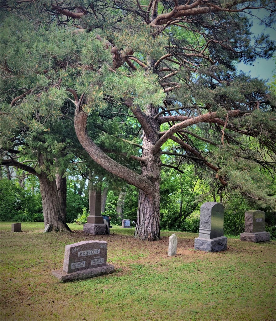 The trees were the first thing I noticed about the small cemetery. Several pines tower over it, one with graceful twisting limbs. These trees feed on the bones of my ancestors.
