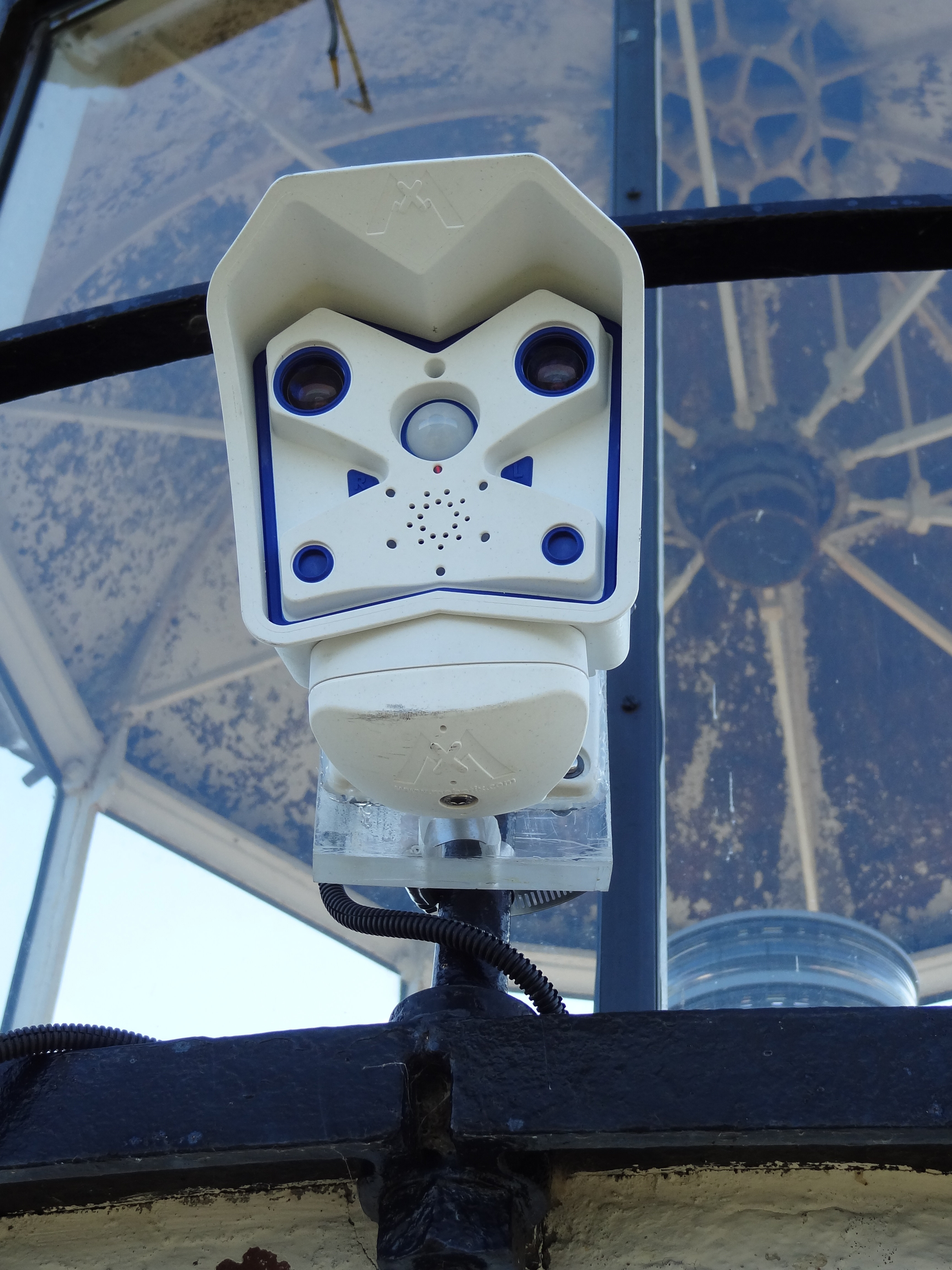 We installed the camera and plugged it into the solar power system atop the lighthouse. Thankfully, the day was calm and warm, so hanging around outside ninety feet in the air wasn’t too scary.