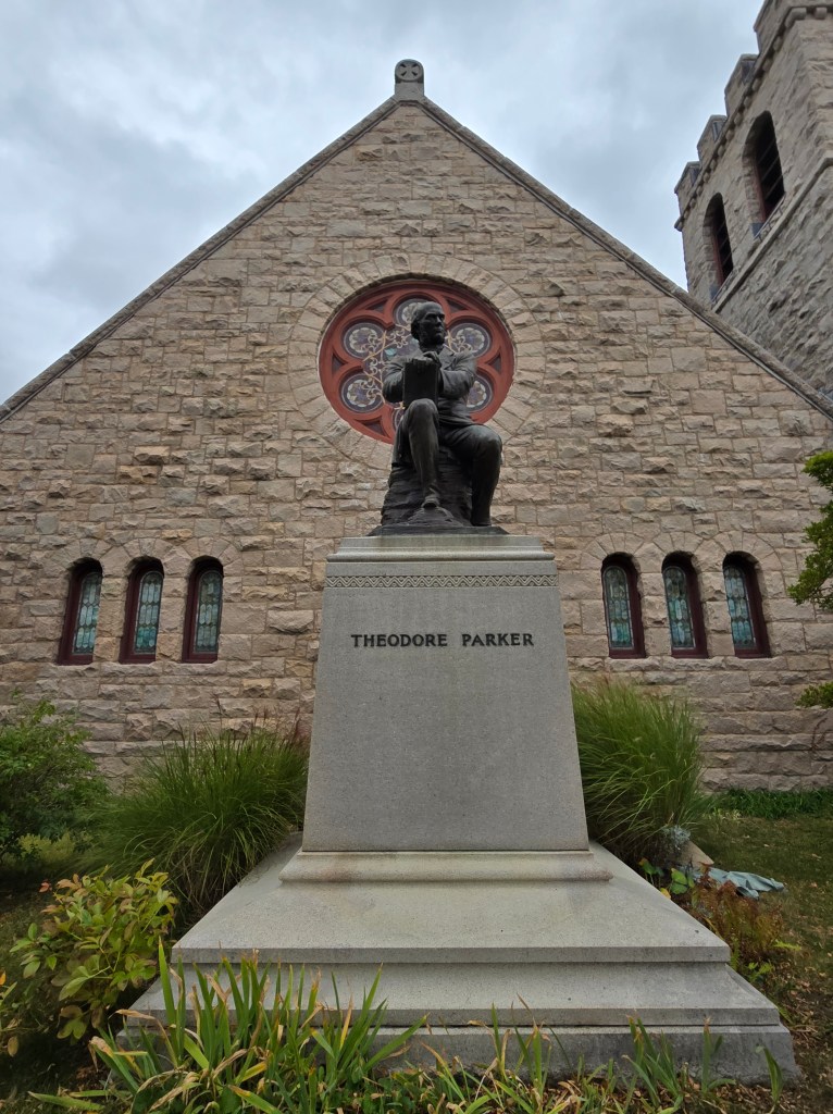 I discovered that noted Unitarian minister and abolitionist Theodore Parker (1810-1860) and I were related through Thomas Parker, a Congregational Church deacon who immigrated from England in 1635. Theodore’s first church assignment just out of Harvard Divinity School was this church in West Roxbury. But the actual building where he preached burned, so the church we attended was not the original.