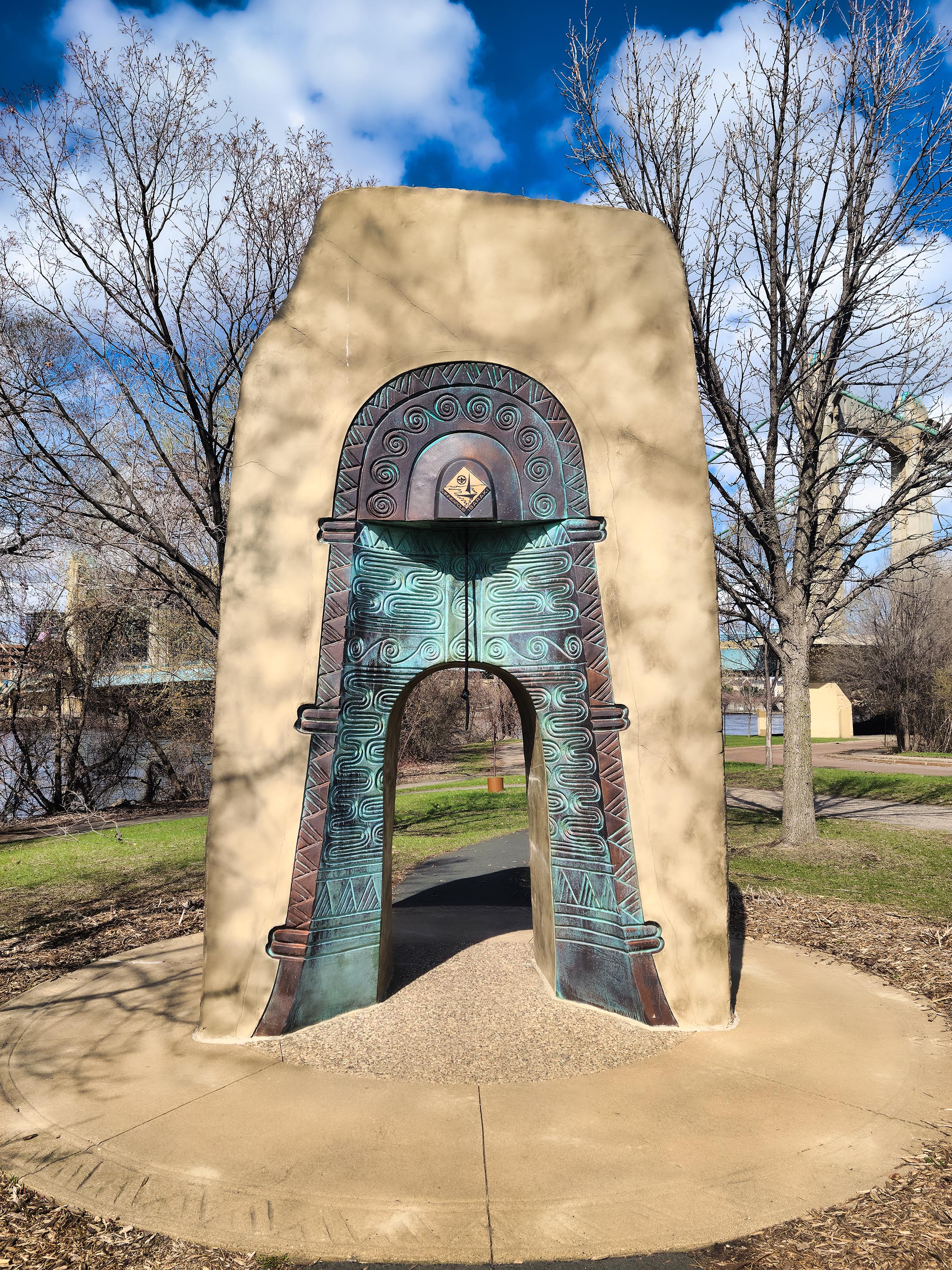 This is the Bell of Two Friends on Nicollet Island in Minneapolis. We came across it during an impromptu walk around the park pavilion. See the rope hanging down over the archway? Ringing the bell it’s attached to signifies a prayer for world peace and continued friendship between the people of Minneapolis and their sister city, Ibaraki, Japan.