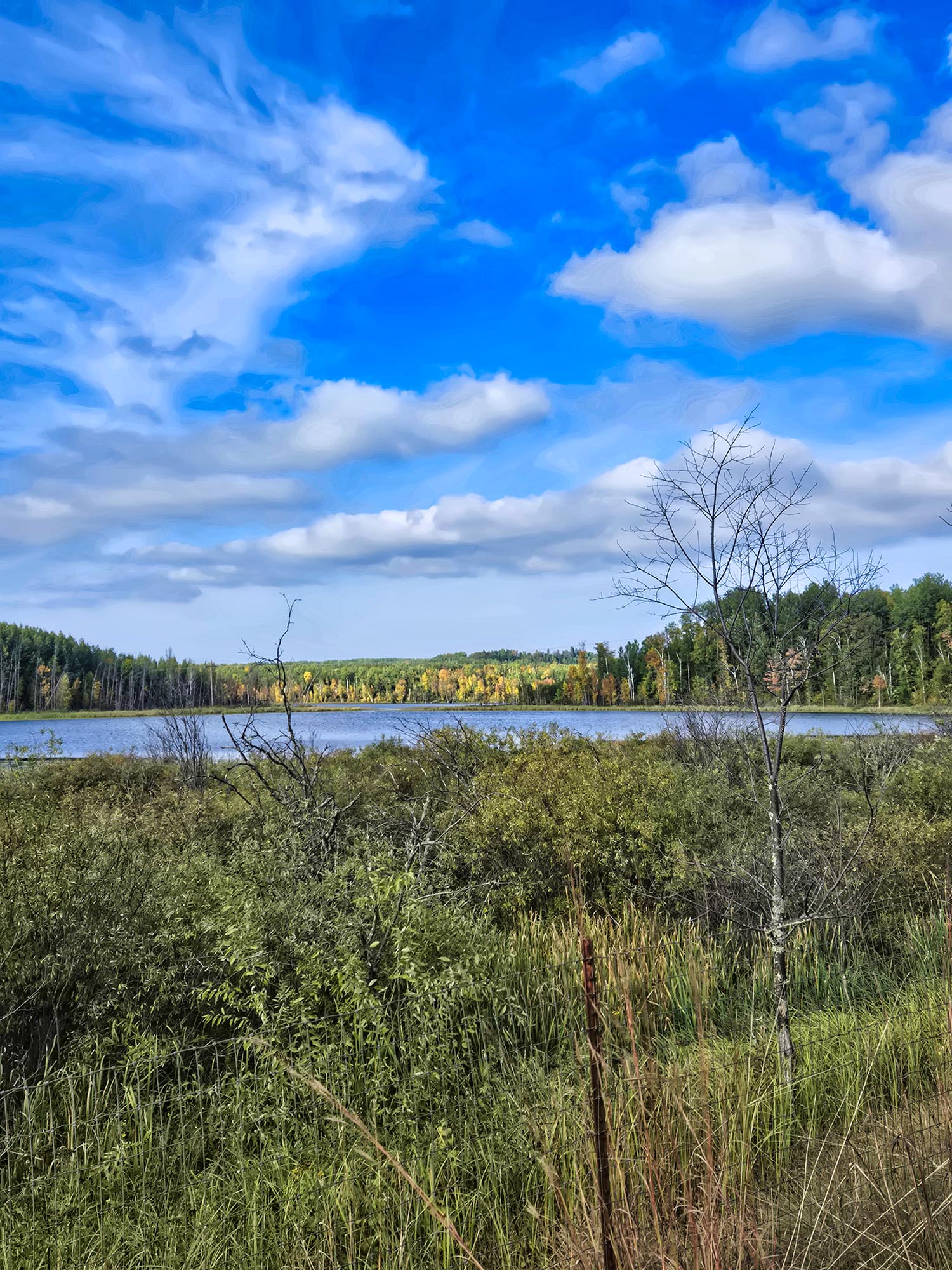 A warm breeze offered one of those final temperate days between summer and fall. The trail began in Nashwauk at a nondescript parking lot near a closed restaurant with the suggestive name of Big O’s Chef House. (Maybe that’s why it went out of business?) Except for a few frost heaves, the mostly flat trail was in good condition. It parallels the highway ,so the distant noise of cars is ever-present.