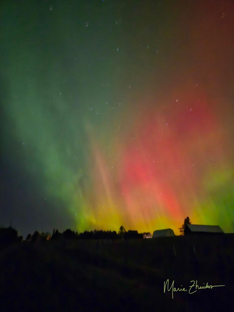 There’s so little oxygen to begin with at high altitude, a strong storm is required to crank up enough oxygen atoms to produce the red aurora. Seeing red is a good sign that a significant storm is underway. Overall, the Nov. 11 storm reached the G4 (severe) level, with aurora reported in all 50 states (including Hawaii) and as far south as the tropics.